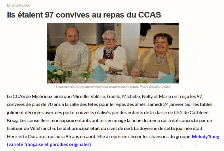 | La MJC vous remercie pour cette magnifique soirée que nous avons partagé avec vous. Vous avez fait l'unanimité et apporter un moment de détente fort.Merci à tous les trois. Joël B. Valérie, Jean et Jo ...vous êtes super extra ! un bon moment de bonne humeur et de convivialité...et l'accordéon une vraie bonne surprise. Jean-pierre.M Soirée très chaleureuse et plaisir partagé. Nath et sa bande. Beaucoup d'émotions sur les anciennes chansons... Votre soirée nous a enchantés.Merci Françoise C. Bonne soirée et bonne ambiance. Martine 73 Génial, foudingue, sublime... Une super soirée, convivialité, plaisir des chansons" presque oubliées" un vrai bonheur |
